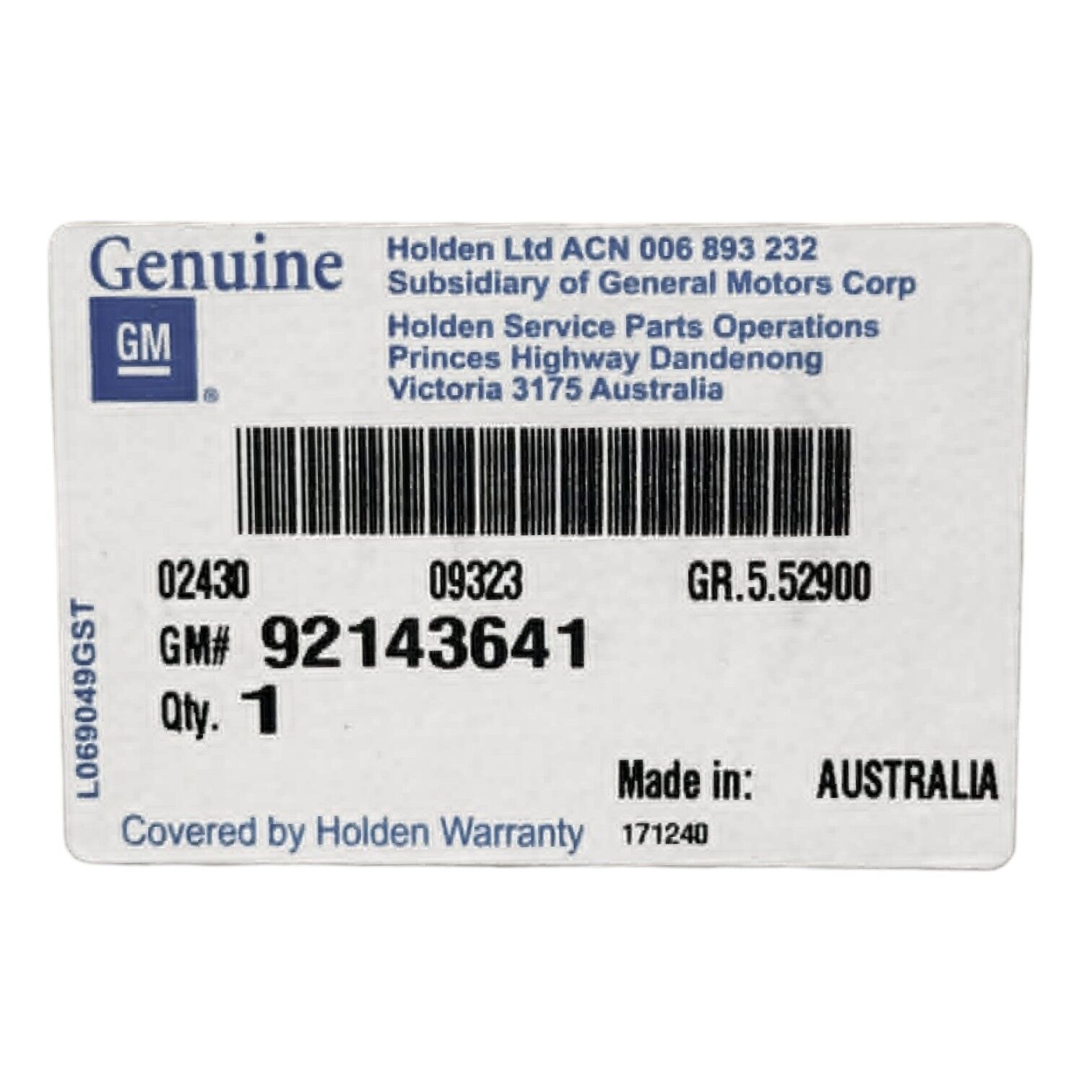 GENUINE GM HOLDEN PART # 92143641