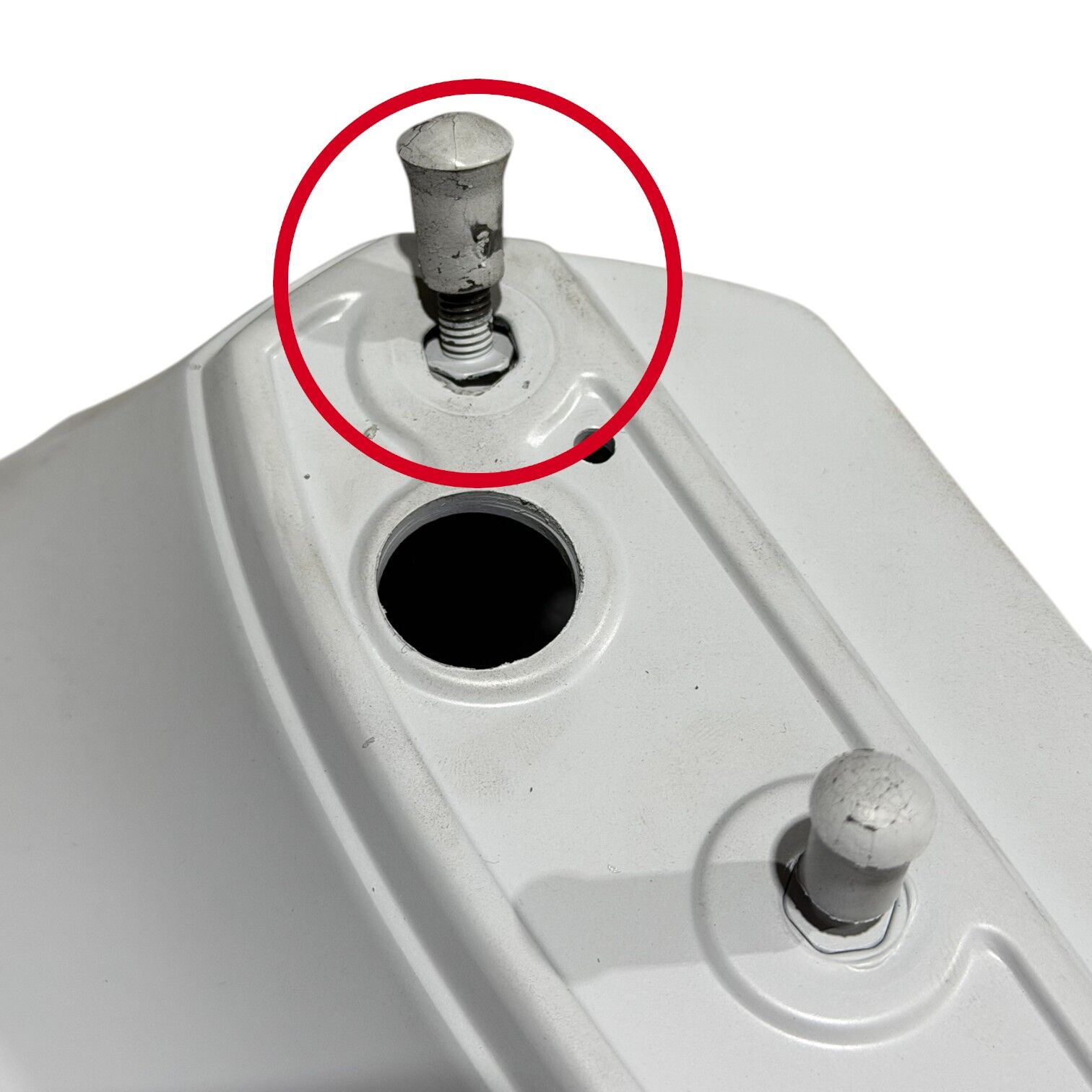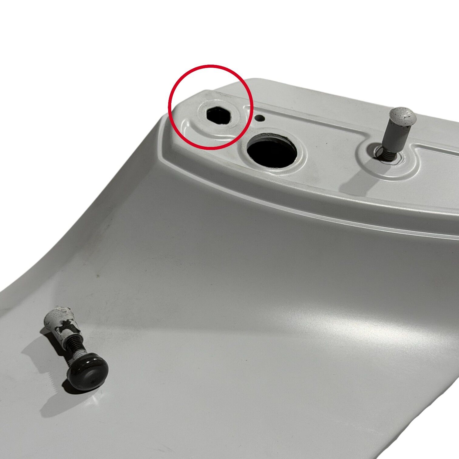 This spoiler is repairable, though the right-hand mounting bolt has detached from its original position. Aside from that specific mounting point, all other screws are intact and in good condition.